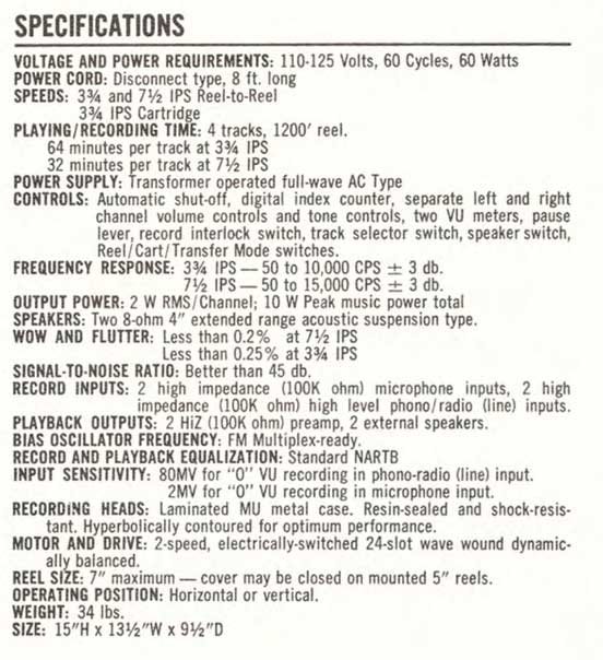 - Speed 1.875, 3.75 & 7.5 ips + 15 w/adapters